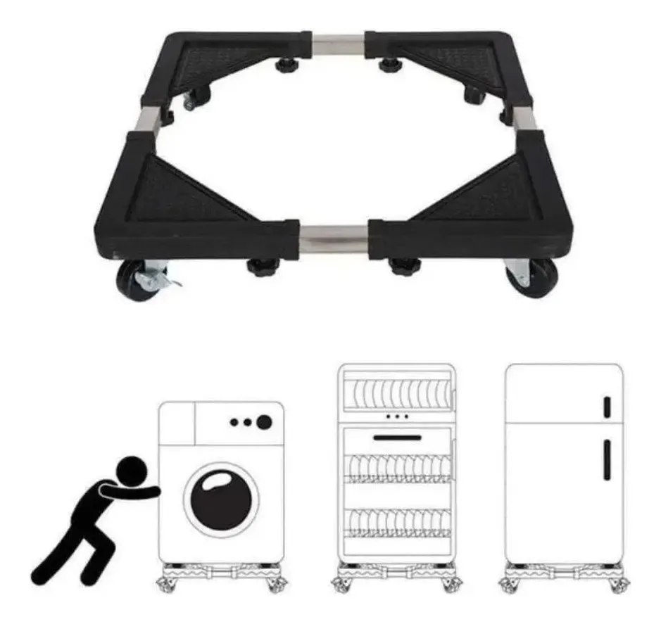 Este soporte ajustable está diseñado para brindar soporte móvil y seguro a electrodomésticos pesados como lavarropas, secadoras, refrigeradores, y más.